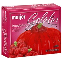 Meijer, Gelatin Dessert, Raspberry is manufactured by Meijer, Inc. with a suggested serving size of 0.13 Of Packages Makes 0.5 Cup (21 G) and has 80 calories per serving.