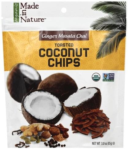 - The manufacturer of Organic Toasted Coconut Chips, Ginger Masala Chai is Made In Nature.