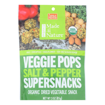 - The manufacturer of Veggie Pops Salt & Pepper Organic Dried Vegetable Snack is Made In Nature.
