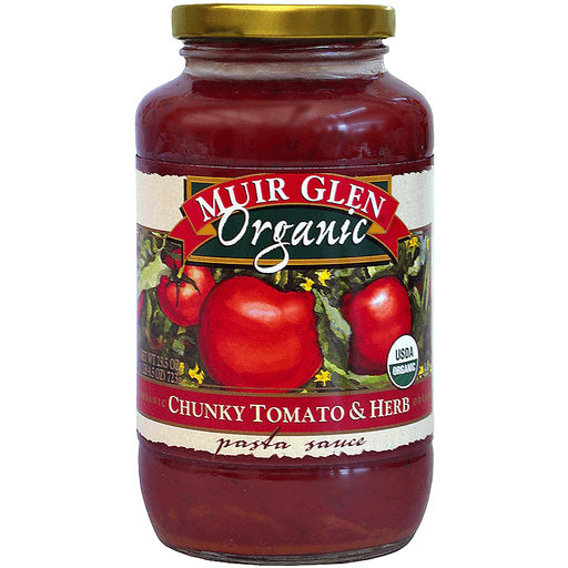 - The manufacturer of Chunky Tomato & Herb Organic No Sugar Added Pasta Sauce, Chunky Tomato & Herb is Muir Glen.