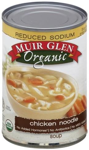35% less sodium than our regular chicken noodle soup (Sodium content reduced from 780 mg to 480 mg per serving). No added hormones (Federal regulations prohibit the use of hormones in poultry). No antibiotics. No MSG added (Except that which occurs naturally in yeast extract). Named after legendary naturalist John Muir, Muir Glen was founded in 1991 by a small group with a passion for organic agriculture. Since our founding, we have been committed to organic farming, because we believe organic food is better, not only for the environment but also for its taste. Known for our award winning organic tomatoes, we now bring you delicious soups made with the finest organic ingredients. Enjoy! We welcome your questions or comments.