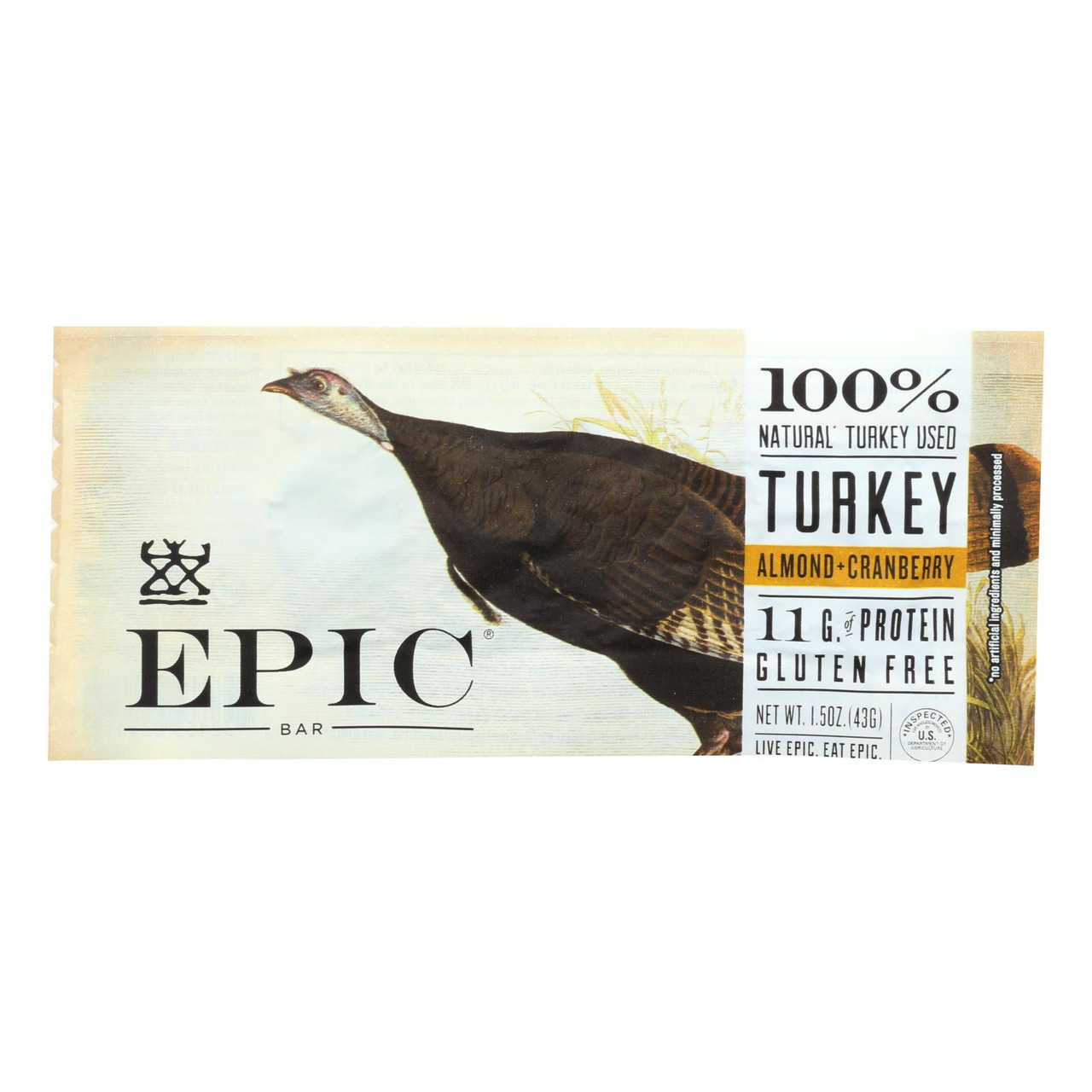 Epic Turkey Almond + Cranberry Protein Bar Is A Certified Gluten-Free Product. This 1.5 Oz. Bar Contains No Growth Hormones Or Artificial.