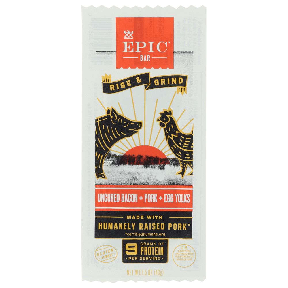 - The manufacturer of Uncured Bacon + Pork + Egg Yolks Rise & Grind Bar, Uncured Bacon is Epic.