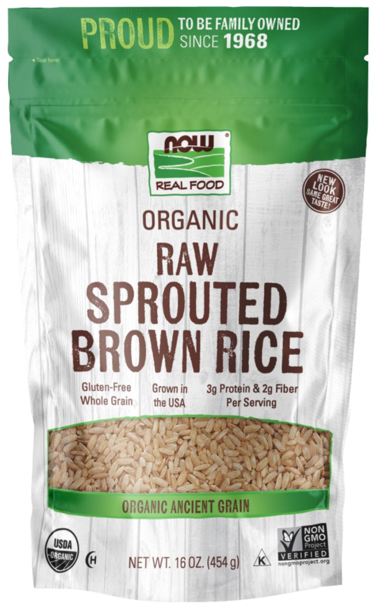 - The manufacturer of Organic Raw Sprouted Brown Rice is Now Foods.