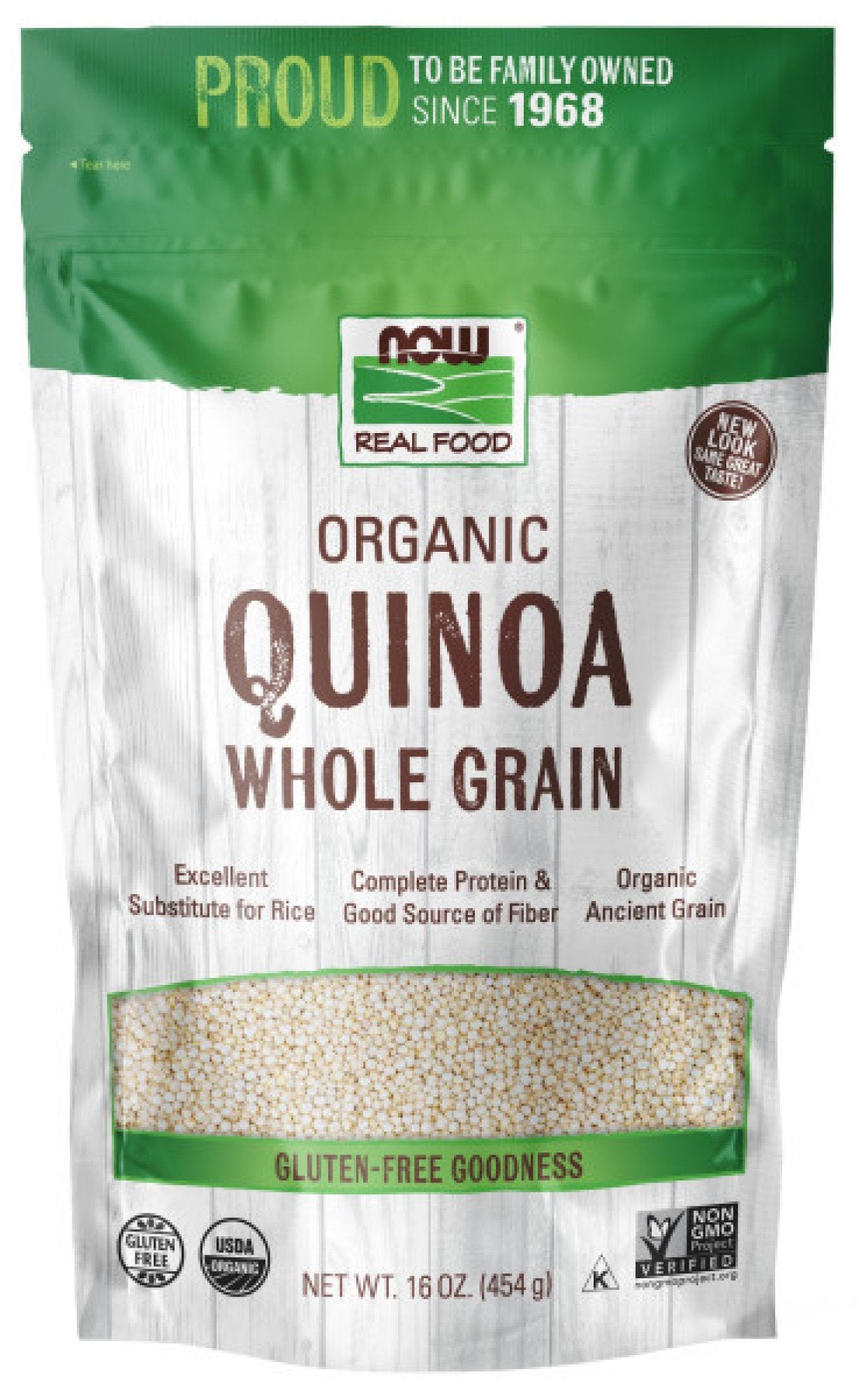 Now FoodsOrganic Quinoa Whole Grain Purely Gluten-Free. USDA Organic. Certified Organic by QAI. Vegetarian/Vegan Product.