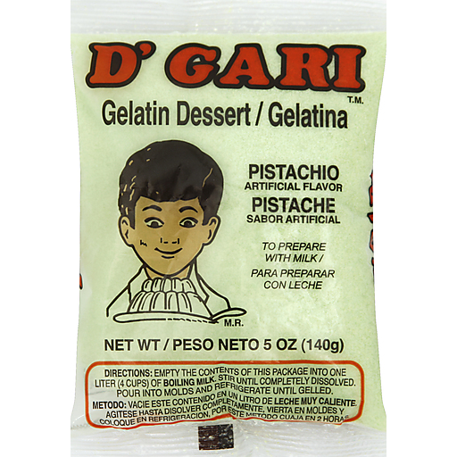 - The product category for D'Gari, Gelatin Dessert, Pistachio, Pistachio is Pudding & Gelatin Snacks.