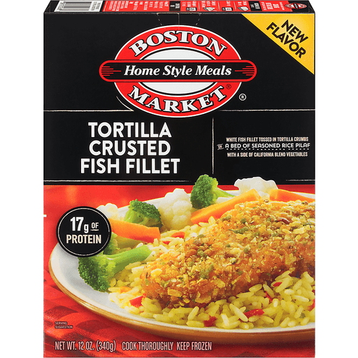 - The manufacturer of Tortilla Crusted Fish Fillet is Boston Market.