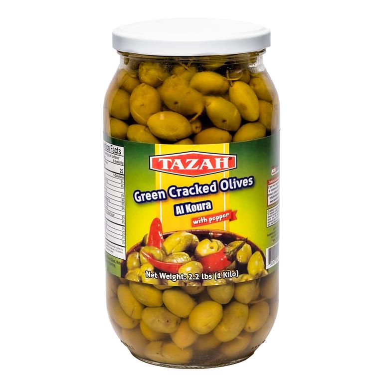 - The product category for Tazah, Green Cracked Olives with Pepper is Olives & Capers.