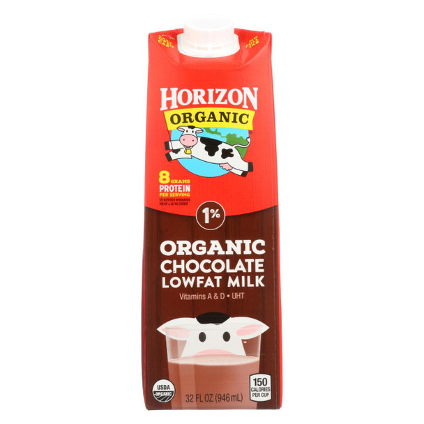 Horizon Organic 1% Reduced Fat Chocolate Milk Is All-Natural, Reduced Fat Milk From Cows Raised Without Antibiotics Or Hormones. Free Of Artificial Colors, Flavors And Preservatives, Horizon Organic 1% Reduced Fat Chocolate Milk Is A Delicious And Healthy Way To Supplement Your Body's Nutrition. This Product Is Kosher Certified. Each Carton Of Horizon Organic 1% Reduced Fat Chocolate Milk Contains 32 Fl. Oz. Of Milk, With 4 Servings Per Carton And 150 Calories Per Serving. Refrigerate After Opening. See Nutrition Facts Panel For Allergens.