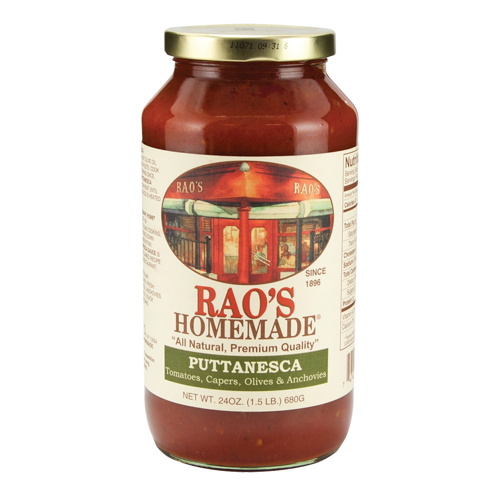 Since 1896. Tomatoes, capers, olives & anchovies. All natural, premium quality. Rao's Homemade it's the sauce bringing the extraordinary home based upon the simplicity of traditional Southern Italian cooking. Rao's Homemade Puttanesca Sauce is brought to you from a recipe passed down from our family to yours. Low saturated fat. A good source of vitamin C. www.raos.com. Product of USA.