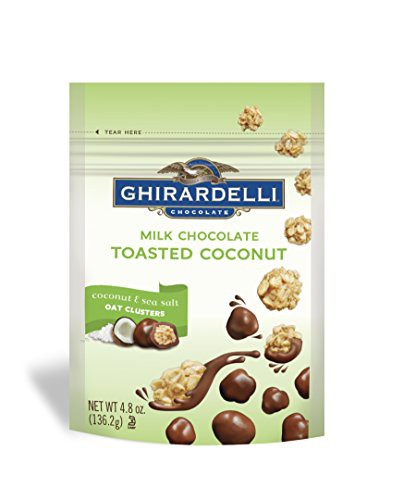 Coconut & sea salt oat clusters. The perfect crunchy snack, with oat clusters and toasted coconut bits covered in creamy milk chocolate! Real toasted coconut and oats! Covered in rich Ghirardelli chocolate.