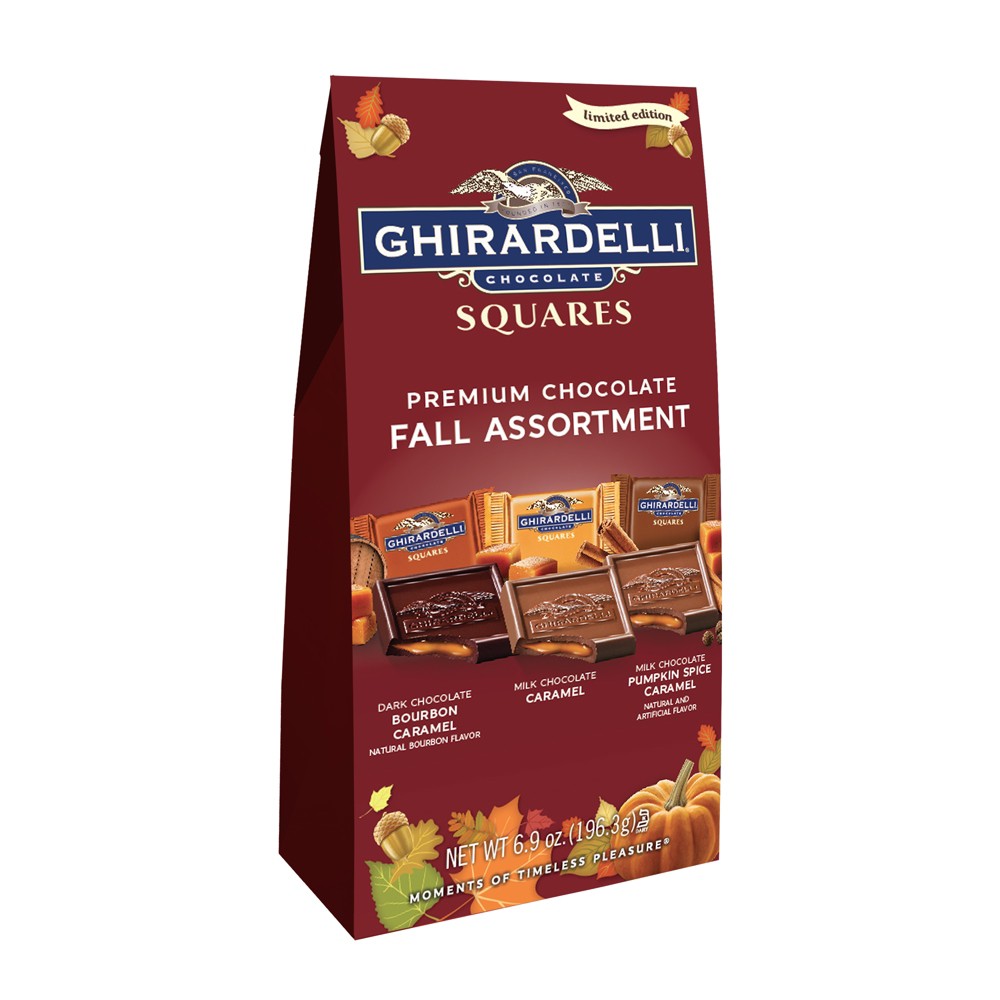 - The manufacturer of Fall Assortment Premium Chocolate Squares, Bourbon Caramel, Caramel, Pumpkin Spice Caramel is Ghirardelli.