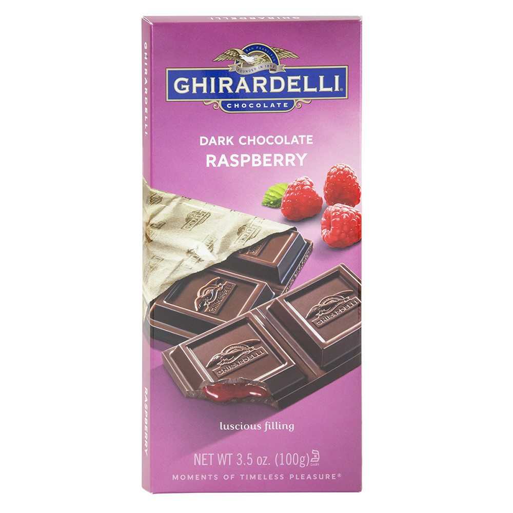 - The manufacturer of Dark Chocolate Raspberry is Ghirardelli.