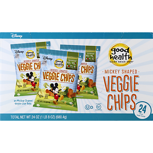 - The manufacturer of Mickey Shaped Veggie Chips is Good Health.