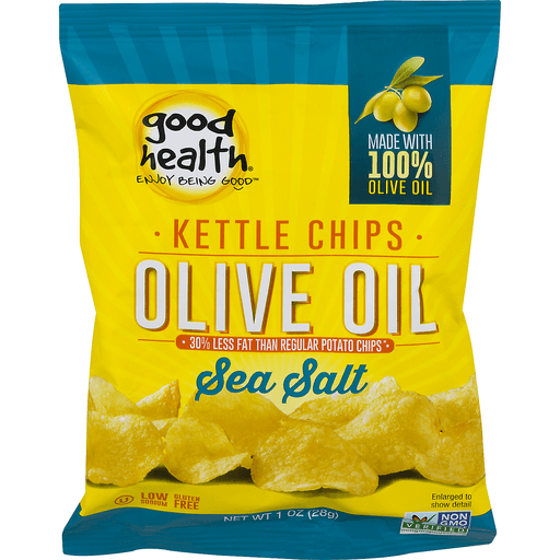 - The manufacturer of Sea Salt Olive Oil Kettle Style Chips, Sea Salt Olive Oil is Good Health.
