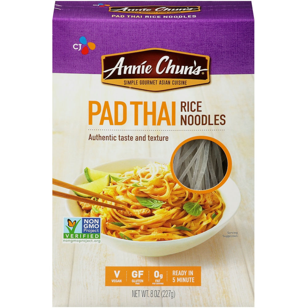 Our special gluten-free Pad Thai Rice Noodles are ideal for making authentic Pad Thai. They’re also fabulous in Asian stir-fries, savory noodle soups and chilled salads alike. Enjoy. Boil these Annie Chun's® Pad Thai Rice Noodles and add to your favorite stir fry, salad or cold noodle dishes. These noodles are great hot or cold and will add that Asian twist to any dish. Whether you just toss them in hot water for a moment or boil them until they are tender, you can't go wrong with these.