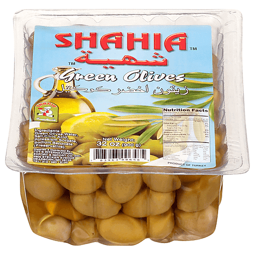 Green Olives, Water, Salt, Citric Acid, Potassium Sorbate, Sodium Benzoate (Preservative).