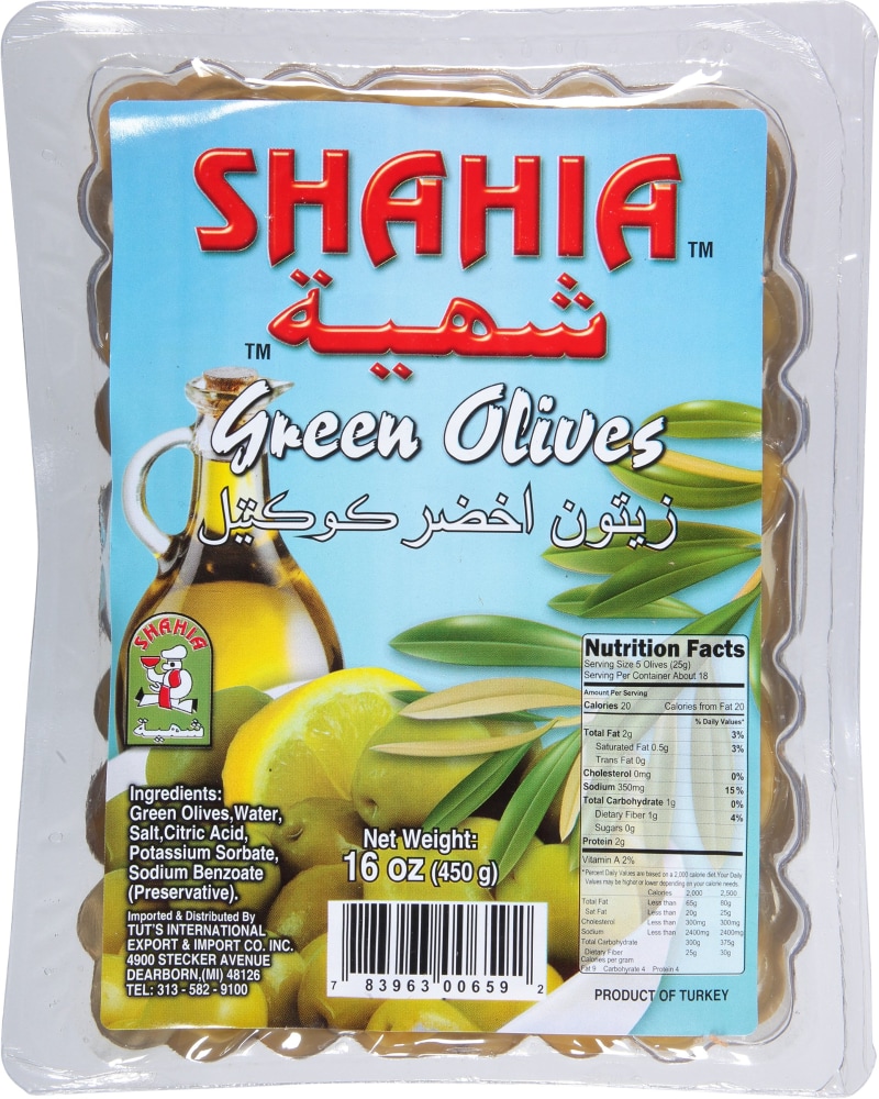 - The manufacturer of Green Olives is Shahia.