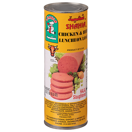 - The manufacturer of Chicken & Beef Luncheon Loaf is Shahia.