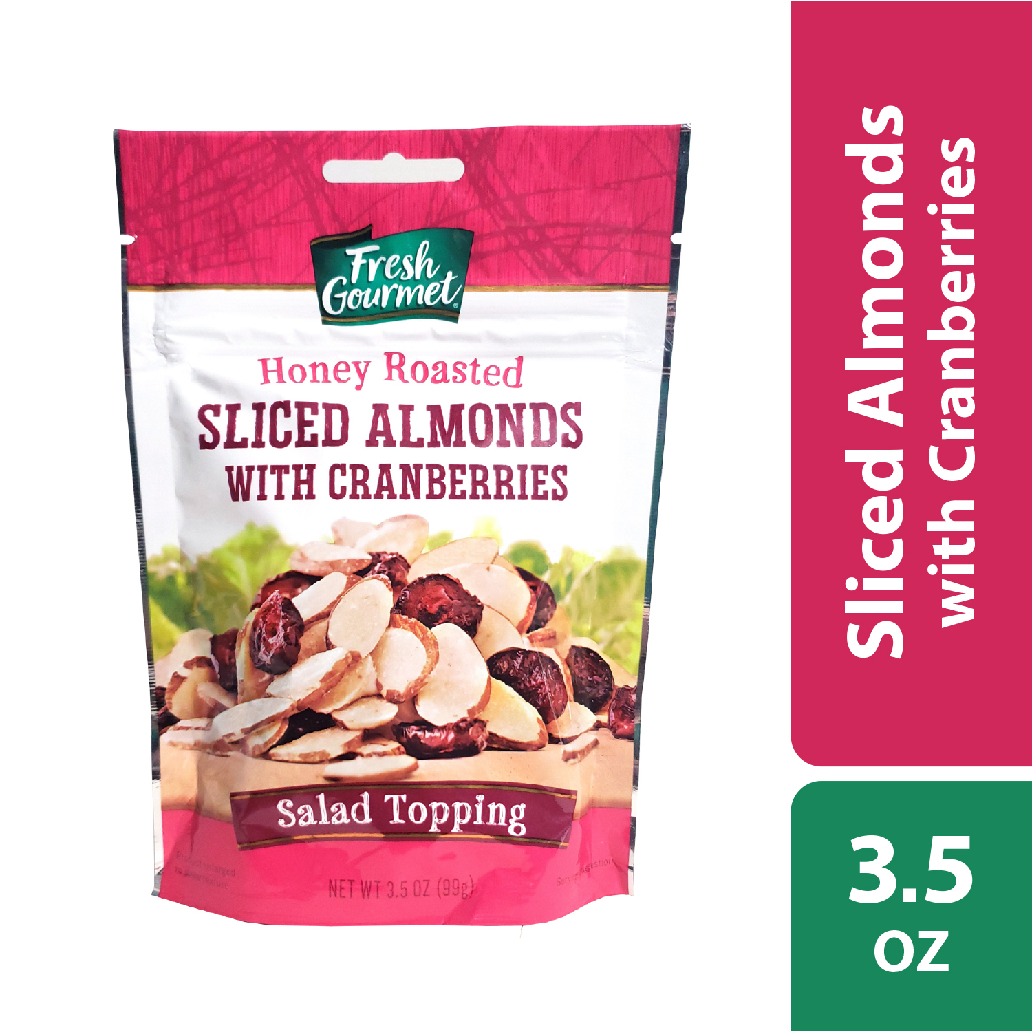 Made for salads! New. Add flavor & crunch. Honey Roasted Sliced Almonds with Cranberries deliver rich almond flavor and a punch of tangy sweetness. Try them on a simple spinach salad with avocado. FreshGourmet.com. Resealable.