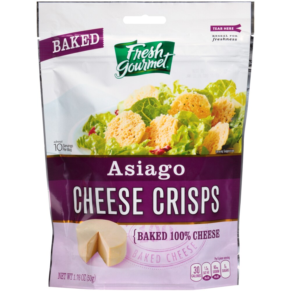 - The manufacturer of Asiago Cheese Crisps is Fresh Gourmet.