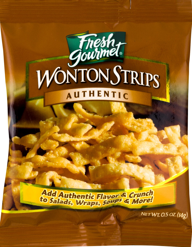 Fresh Gourmet® Wonton Strips Authentic. Add authentic flavor & crunch to salads, wraps, soups & more! (888) 708-2222. For more serving suggestions, and to learn more about our line of crunchy toppings, visit us at www.foodservice.freshgourmet.com and www.sugarfoods.com.