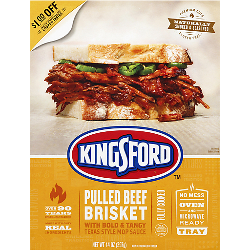 - The manufacturer of Pulled Beef Brisket with Bold & Tangy Texas Style Mop Sauce, Bold & Tangy Texas Style Mop is Kingsford.