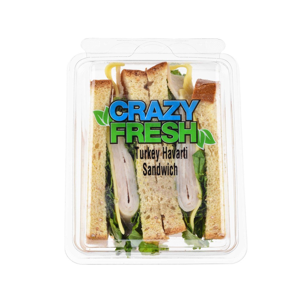 Freshly baked multi-grain wheat bread holds a savory duo of oven-roasted turkey breast & Havarti cheese. Only fresh, premium ingredients are used to make our Crazy Fresh Turkey Havarti Sandwich. Pack your lunch quickly & easily with our Crazy Fresh sandwiches!