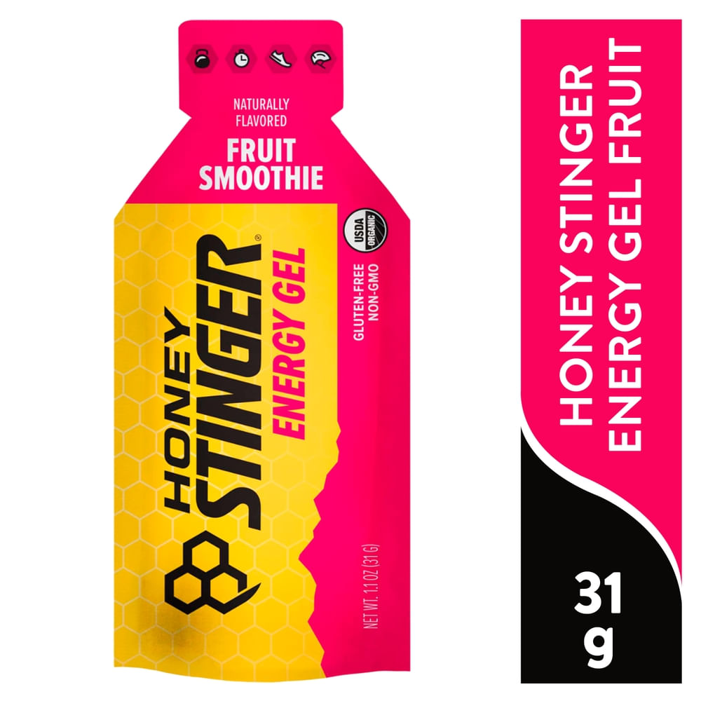 Energy Gel Fruit Smoothie A balanced blend of organic honey + electrolytes, smooth texture, and the rich fruit flavors of strawberry, orange, and cherry for optimal performance. Honey Stinger Gels are optimized for efficient fueling during athletic efforts. Gels provide instant, honey-powered energy that lasts, which delays muscle fatigue and gives your body the power to achieve your goals.