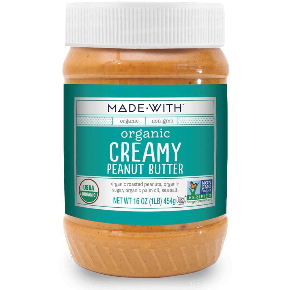 MADE∙WITH™ Organic Creamy Peanut Butter is ideal for a classic sandwich or savory delight. Its smooth texture tastes great on bread, apples, or celery.