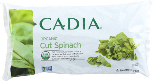 - The manufacturer of Organic Cut Spinach is Cadia.