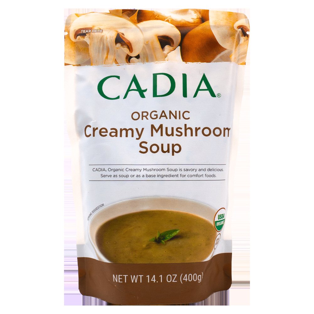 Cadia Organic Creamy Mushroom Soup is savory and delicious. Serve as a soup or as a base ingredient for comfort foods.
