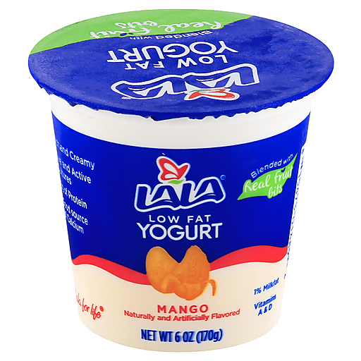 Naturally and artificially flavored. 6 g of protein. Low fat. 1 % milkfat Vitamins A & D. Good source of calcium. Blended with real fruit bits. Rich and creamy. Live and active cultures. Grade A. www.lalafoods.com. Visit us at www.lalafoods.com. Customer service 1-866-648-5858 Please recycle.