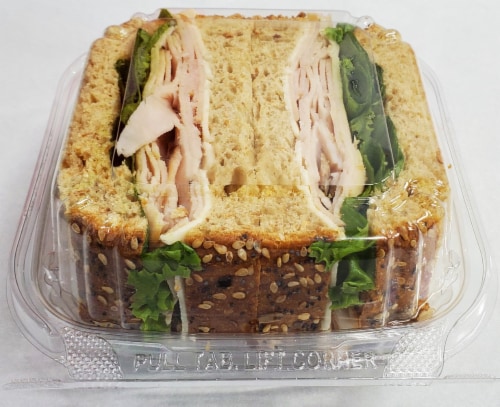 Turkey Breast (Turkey Broth, Honey, Contains Less Than 2% of Salt. Maple Syrup, Sugar, Sodium Phosphate, Sodium Erythorbate, Sodium Nitrite, Coated with: Sugar, Gelatin Brown Sugar, Natural Flavor), Multigrain Bread (Enriched Wheat Flour [Wheat Flour, Malted Barley Flour, Ascorbic Acid Niacin. Reduced Iron, Thiamine Mononitrate, Riboflavin, Folic Acid], Water, Whole Wheat Flour, 7 Grain Mix [Flour, Sugar, Bran Shortening. Oatmeal, Rye Meal, Corn Meal, Sesame Seeds Calcium Propionate]. Soybean Oil, Vital Wheat Gluten, Salt, Sodium Stearoyi Lactylate, Soy Flour, Vegetable Oil [Soybean And/Or Canola And/Or Sunflower Oil), Calcium Sulfate, Ascorbic Acid Potassium Iodate, Yeast, Molasses, Salt, Raisins , Enzymes. Caramel Color. Topping: Poppy Seeds, Sesame Seeds, Onion, Sunflower Seeds, Flax Seeds), Havarti Cheese (Pasteurized Milk, Salt. Microbial Rennet Culture, Calcium Choloride), Leaf Lettuce,