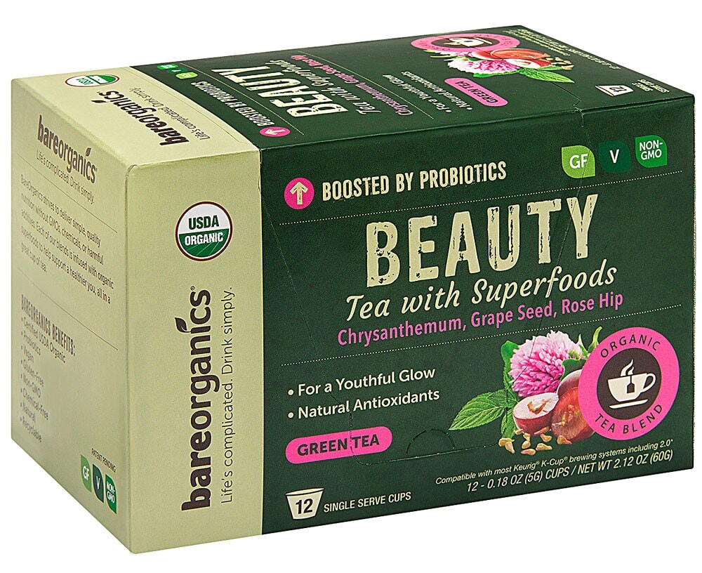 - The manufacturer of Biotin, Acerola Cherry, Rose Hip Beauty Organic Green Tea Blend with Superfoods Single Serve Cups, is BareOrganics.
