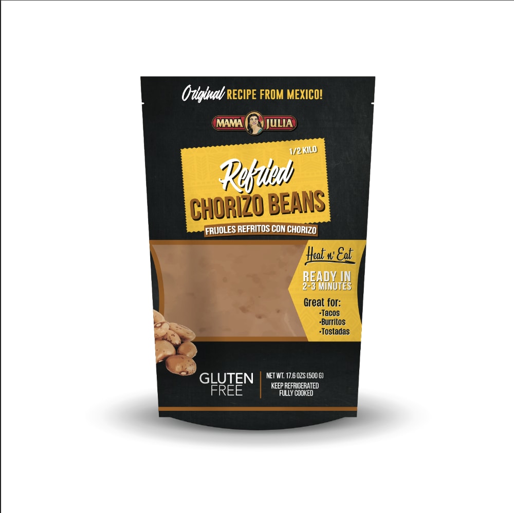 - The manufacturer of Refried Chorizo Beans, Refried is Mama Julia.