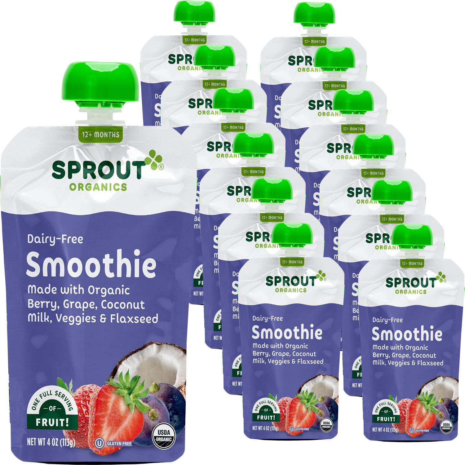 Sprout Organics is dedicated to providing clean, nutritious foods made from whole, organic ingredients for growing children. Their Dairy-Free Smoothie in Berry, Grape, Coconut Milk, Veggies & Flax Seed is a delicious and nutritious option for toddlers 12 months and older. Made with a blend of whole fruits, veggies, and flax seeds for balanced nutrition USDA certified organic, non-GMO, and vegan-friendly with no fillers or artificial ingredients Nutrient-rich with 2g of protein, 2g of fiber, and a full serving of fruit in every pouch Gluten-free and kosher, suitable for a variety of dietary needs Packaged in BPA-free pouches for safe, on-the-go convenience Ideal for toddlers 12+ months, fueling their active days with wholesome goodness Convenient 12-pack, perfect for stocking up or easy meal planning.