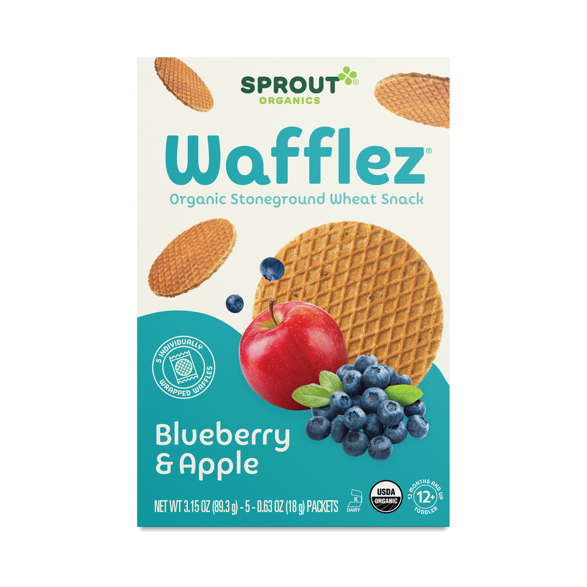 Sprout Organic Blueberry Apple Wafflez is a delicious oven-baked toddler snack made with whole grains and real organic fruits. Toddlers love the fruity taste of this handheld waffle snack, and parents love that Wafflez are low in sugar and come in five, individually-wrapped portions which makes on-the-go snacking easy! Sprout Organic Wafflez are USDA Certified Organic, Non-GMO, and contain nothing artificial.
