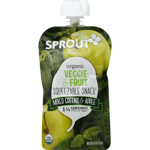 - The manufacturer of Veggie & Fruit Squeezable Snack, Mixed Green & Apple is Sprout.