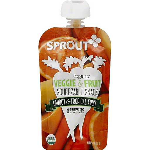 - The manufacturer of Organic Veggie & Fruit Squeezable Snacks, Carot & Tropical Fruit is Sprout.