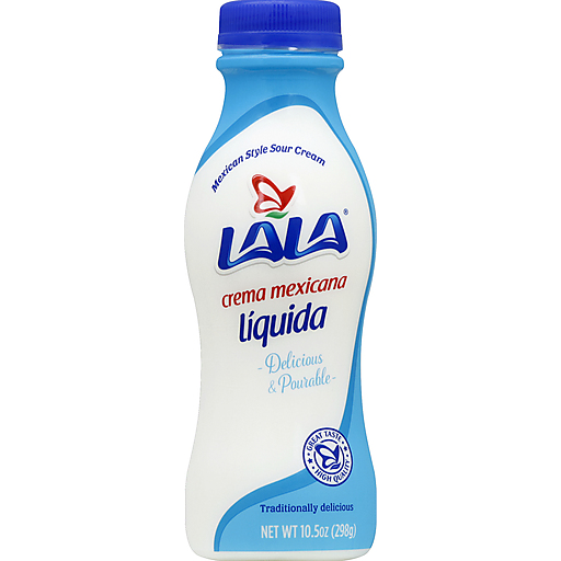 Grade A. Pasteurized. Delicious & pourable. Great taste. High quality. Traditionally delicious. Our delicious sour cream is made with only the finest ingredients. With a creamy-pourable consistency, Lala Mexican-Style Sour Cream is the perfect topping for enchiladas, tacos and more. Try it! Lala for life.