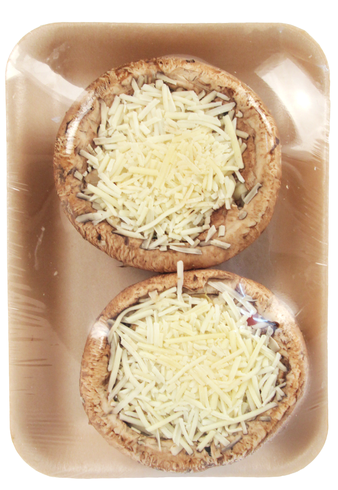 Portabella Mushrooms, Marinated Artichoke Hearts (Artichoke Hearts, Vegetable Oil [Soybean And/Or Sunflower Oil], Water, Vinegar, Salt, Spices, Citric Acid, Ascorbic Acid), Red Bell Pepper, Spinach, Panko Bread Crumbs (Bleached Wheat Flour, Dextrose, Salt, Yeast), Onion, Parmesan Cheese (Pasteurized Part Skim Milk, Cheese Cultures, Salt, Enzymes, Starch & Powdered Cellulose [Anti-Caking Agents]), Mozzarella Cheese (Pasteurized Milk, Cheese Cultures, Salt, Enzymes, Powdered Cellulose [to Prevent Caking], Natamycin [to Protect Flavor]), Garlic, Crimini Mushrooms, Parmesan Cheese (Pasteurized Milk, Cheese Culture, Salt, Enzymes. May Contain Powdered Cellulose, Potato Starch, or Corn Starch to Prevent Caking), Worcestershire Sauce (Distilled Vinegar, Molasses, Corn Syrup, Water, Salt, Caramel Color, Sugar, Spices, Anchovies, Natural Flavor (Contains Soy), Tamarind), Pepper Jack Cheese (Pasteurized Milk, Jalapeno Peppers, Salt, Cheese Culture, Enzymes, Potato Starch and Powdered Cellulose [to Prevent Caking], Natamycin [Natural Mold Inhibitor]), Cooking Sherry (Sherry Wine, Salt, Potassium Metabisulfite [Preservative]), Parsley, Basil, Sage, Black Pepper.