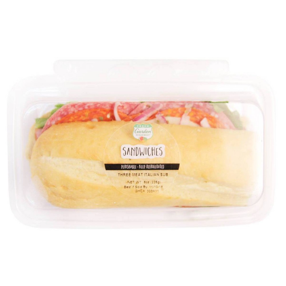 - The manufacturer of Three Meat Italian Sub Sandwiches, Three Meat Italian Sub is Fresh Garden Highway.