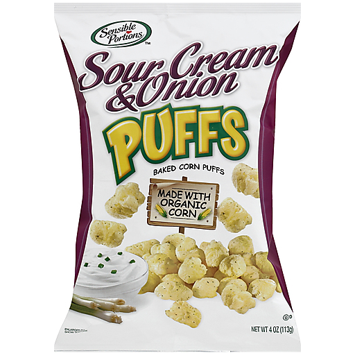 - The product category for Sensible Portions, Puffs Baked Corn Puffs, Sour Cream & Onion, Sour Cream & Onion is Chips.