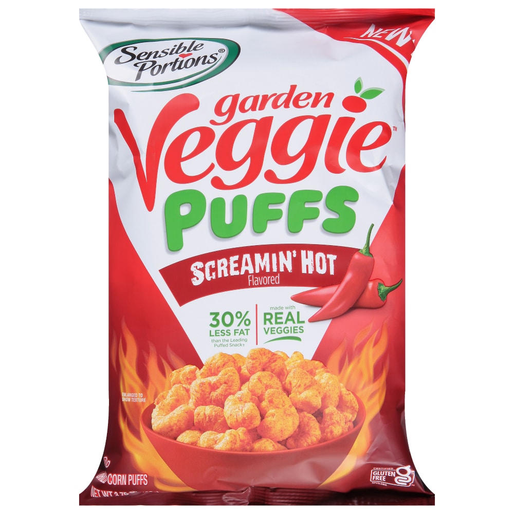 Sensible Portions® Garden Veggie Puffs™ are an airy and poppable snack that are sure to please your entire family, even the kids at heart. They are baked, never fried, made with real vegetables and have no artificial ingredients. When you get all of this, plus a burst of screamin' hot spice it makes for one satisfying snack of Sensible Portions®. Grab a bag today!