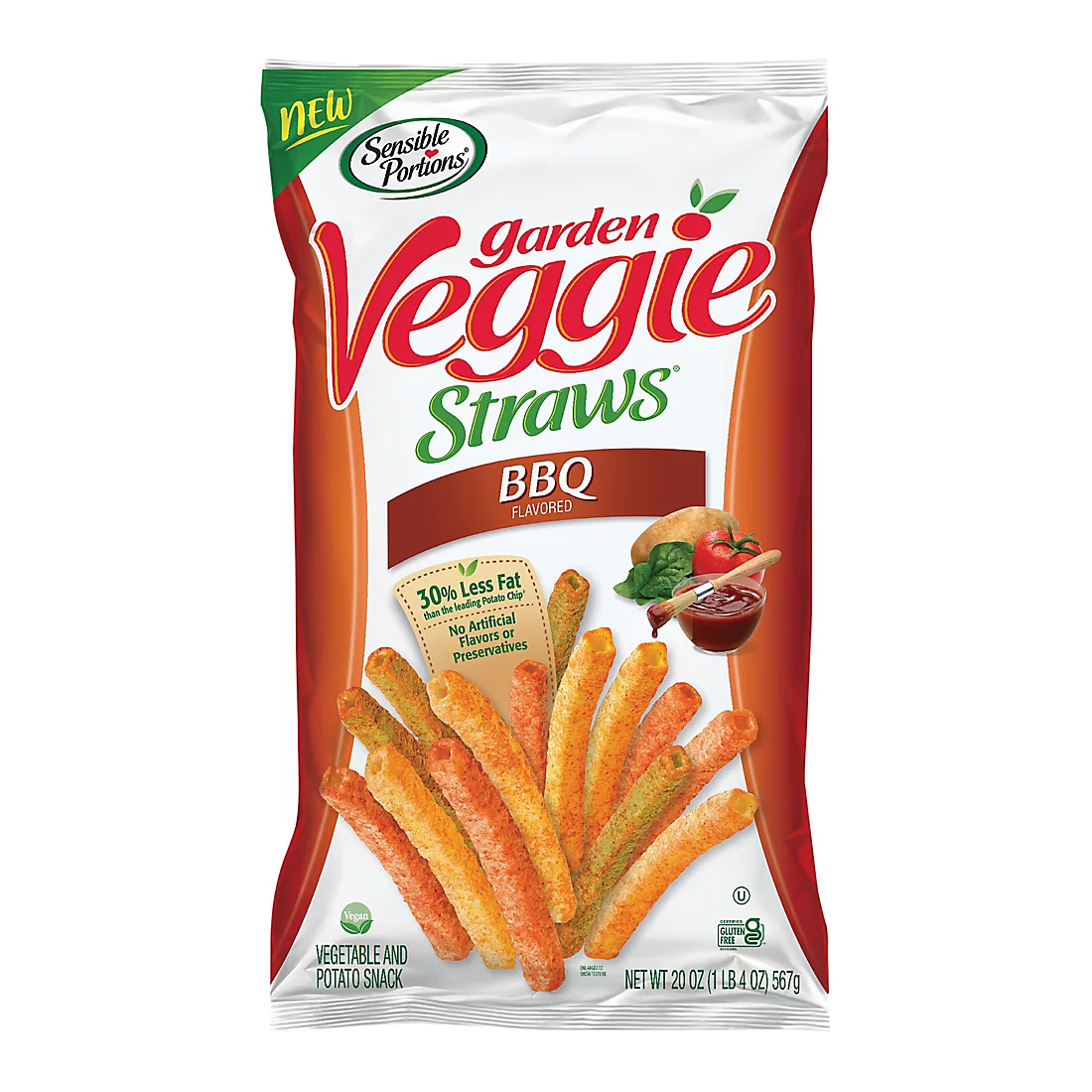 Sensible Portions | Sensible Portions Barbecue Garden Veggie Straws combine garden-grown potatoes and ripe vegetables to form a better-for-you snack that has 30% less fat than the leading potato chip and allows for 38 straws per serving. Bursting with smoky, sweet barbeque flavor your taste buds will be transported to Summer days. Now you can satisfy your snack cravings in a smart and wholesome way.