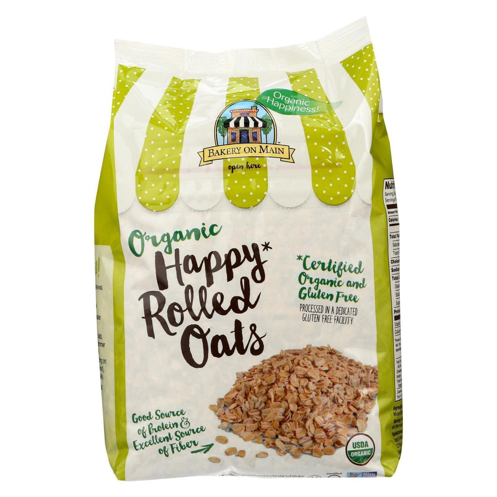 Bakery on main organic happy rolled oats is the simple gluten-free breakfast you've been looking for. Bakery on main uses usda certified organic whole grain oats grown in dedicated gluten-free farms and processed in certified gluten-free factories. These oats have been third-party non-gmo gluten-free and organic certified so you can feel confident in your breakfast. With 5 oz of fiber and 8 oz of protein per serving its hard to believe that the only ingredient is whole grain oats. Bakery on main has made preparation easy with two options to cook. Just add water and boil on the stovetop for 3-6 minutes. Healthys never been so easy. Includes one 24 oz package. See nutrition facts panel for allergens. At bakery on main our mission is to create delicious and fearlessly unique gluten-free products. We want all our customers to be happy and healthy. We don't believe a food allergy should prevent great taste.