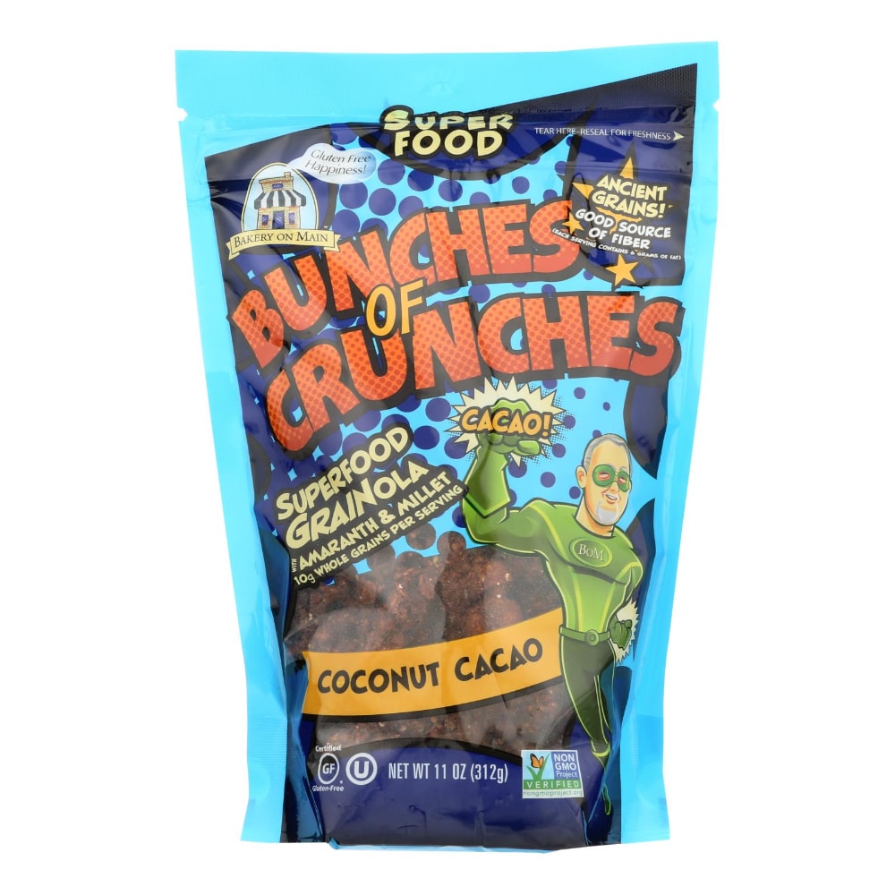 That's the sound of Bakery on Main's Crunch Crusader taking on your taste buds. Fighting the snack attack is easy with POWer of audaciously premium whole grains and bakeshop delicious flavors such as Dark Chocolate Sea Salt with Chia and Coconut Cacao.