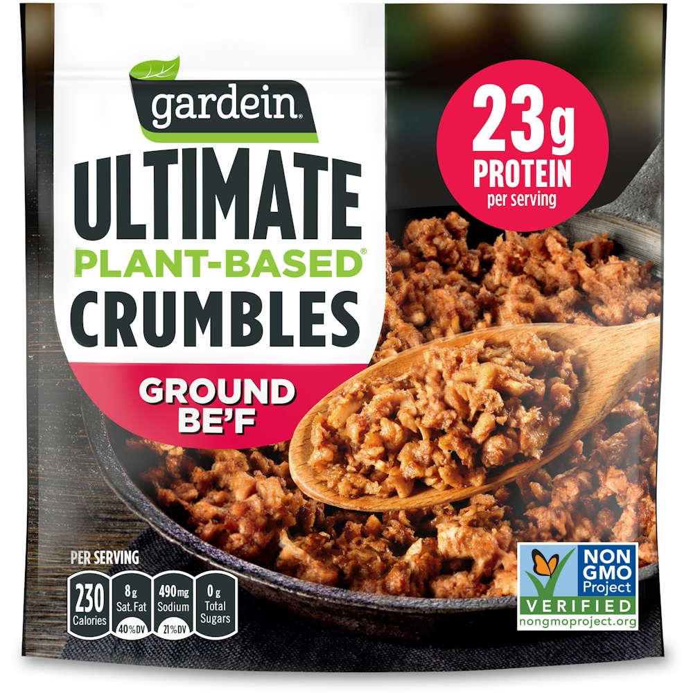 Discover how delicious meatless can be with Gardein Ultimate Plant-Based Crumbles, Ground Be'f. The savory meatless crumbles offer a satisfying taste and texture. They are sure to become the star of any meal. This plant based vegetarian ground beef alternative is Kosher, certified vegan, Non-GMO Project Verified and gluten free for a vegetarian food that fits your lifestyle. With 23 grams of protein per serving, meatless frozen crumbles are a tasty vegan protein option. Easy to make, Ultimate Plant-Based Crumbles can be cooked into your favorite recipes in the microwave or on the stove. Simply follow the instructions on the package for delicious vegan and vegetarian meals. Store the convenient frozen food in your freezer until you're ready to enjoy it. Your favorite foods made meatless. Discover tasty frozen entrees, appetizers and more. Gardein makes delicious meatless foods that make skipping meat easy without skipping your favorite foods.