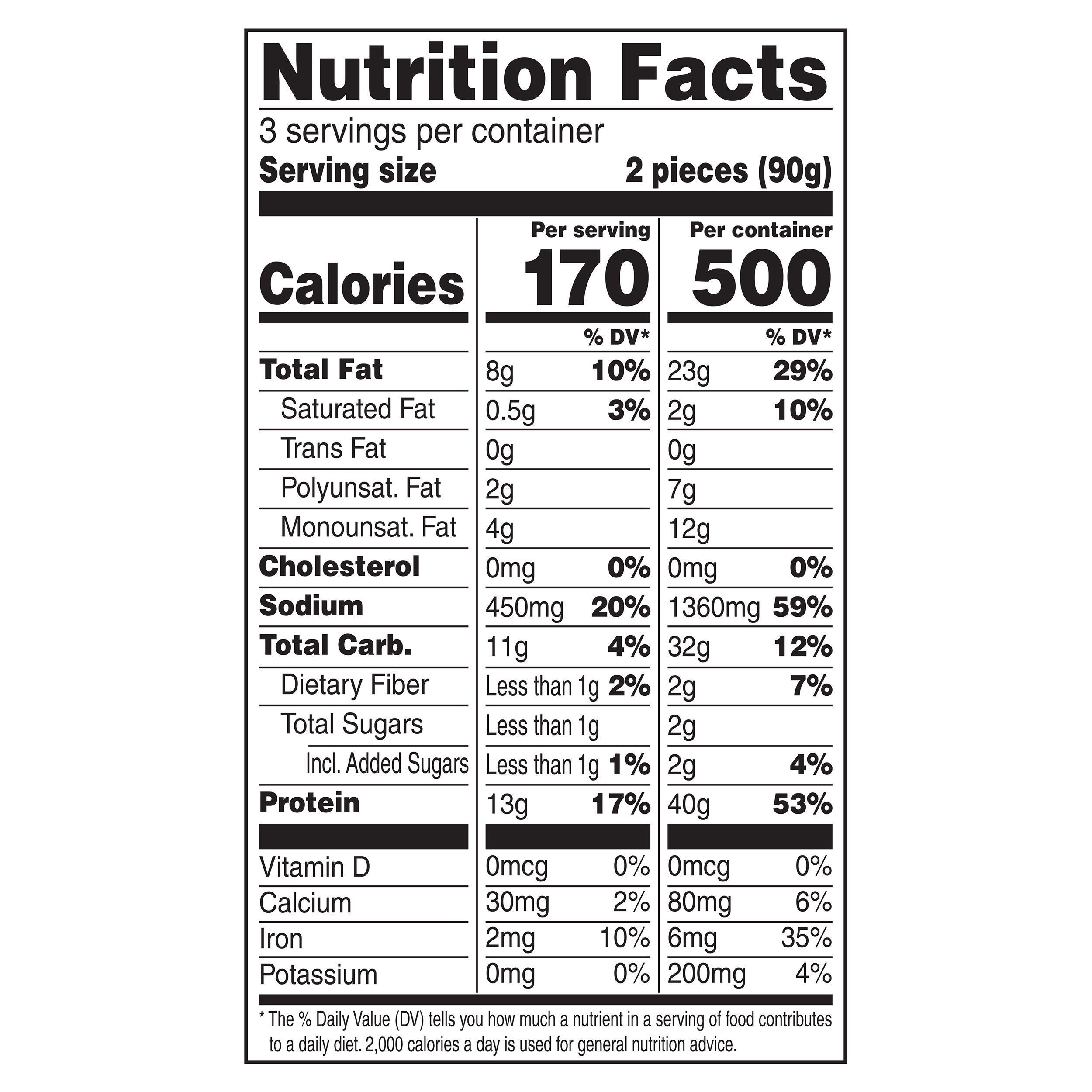 Water, Soy Protein Isolate, Enriched Wheat Flour (Wheat Flour, Niacin, Reduced Iron, Thiamine Mononitrate, Riboflavin, Folic Acid), Vital Wheat Gluten, Canola Oil, 2% or Less of: Corn Meal, Methylcellulose, Maltodextrin, Salt, Ancient Grain Flour (Khorasan Wheat), Sugar, Potato Starch, Natural Flavors, Rice Flour, Modified Potato Starch, Wheat Gluten, Dried Red Bell Pepper, Yeast Extract, Titanium Dioxide (Color), Spices, Dried Lemon Peel, Garlic Powder, Citric Acid, Tomato Powder, Onion Powder, Yeast, Cilantro, Dehydrated Garlic, Chipotle Chile Powder, Soybean Oil, Leavening (Sodium Acid Pyrophosphate, Sodium Bicarbonate, Monocalcium Phosphate), Modified Corn Starch, Lactic Acid, Sunflower Oil.